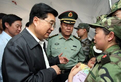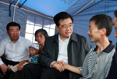 胡錦濤前往重災區(qū)北川縣看望慰問受災群眾
