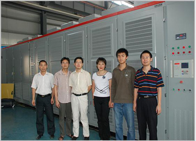 國(guó)家電控配電設(shè)備質(zhì)量監(jiān)督檢驗(yàn)中心(天津發(fā)配電及店控設(shè)備檢測(cè)所)為我國(guó)高壓變頻器設(shè)備的國(guó)家質(zhì)量監(jiān)督檢驗(yàn)中心和權(quán)威機(jī)構(gòu)。在為期兩天的產(chǎn)品檢驗(yàn)過(guò)程中,利用公司高壓電機(jī)控制動(dòng)態(tài)試驗(yàn)室完成了包括轉(zhuǎn)速追蹤、各類(lèi)控制保護(hù)功能、頻率調(diào)節(jié)特性、諧波、成套裝置額定輸入電壓、額定輸出電壓、電流特性等試驗(yàn),產(chǎn)品檢驗(yàn)一次通過(guò)。