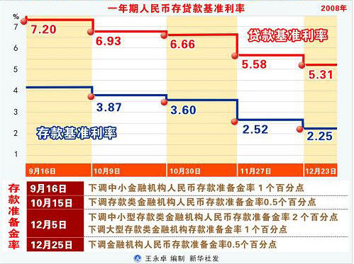 此外,從2008年12月25日起,我國還將下調(diào)金融機(jī)構(gòu)人民幣存款準(zhǔn)備金率0.5個(gè)百分點(diǎn)。