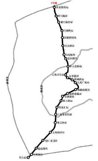 上海地鐵一號(hào)線運(yùn)營(yíng)路線及示意圖