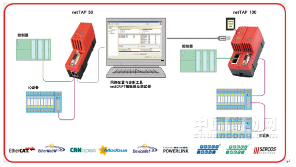 2、NT100——通用協(xié)議自由轉(zhuǎn)換網(wǎng)關(guān),保證工廠系統(tǒng)穩(wěn)定通訊,消除不同通訊協(xié)議設(shè)備連接的障礙,不管是對(duì)于Profibus、CANopen、Devicenet、CC-Link等現(xiàn)場(chǎng)總線,還是PROFINET、EtherCAT、Ethernet/IP、SERCOS III、PowerLink、Modbus/TCP等實(shí)時(shí)以太網(wǎng),或者M(jìn)odbus RTU、ASCII、netSCRIPT(自定義串口協(xié)議)等串口協(xié)議,NT100對(duì)各種工業(yè)網(wǎng)絡(luò)互連都提供了解決方案。