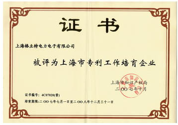 格立特公司獲“上海市專(zhuān)利工作培育企業(yè)”證書(shū)