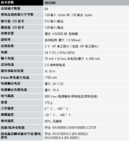 BK3500 總線耦合器可連接所有的總線端子。只要用戶將它們連接起來,處理模擬 I/O 信號與處理其它種類的信號沒有什么區(qū)別??刂破鬟^程映像區(qū)內(nèi)的信息以字節(jié)隊列的格式出現(xiàn),等待控制器作下一步處理。