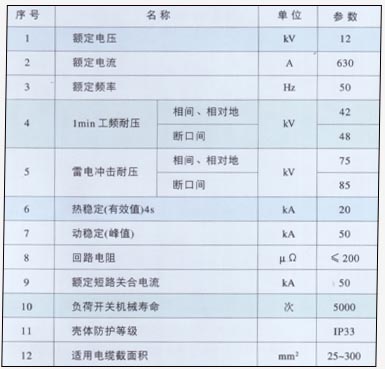 代負(fù)荷開關(guān)型技術(shù)參數(shù):