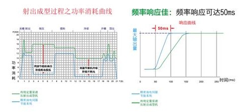 傳統(tǒng)的注塑機(jī)使用油壓系統(tǒng),其用電占注塑機(jī)的75%以上:在注塑機(jī)運(yùn)行中,開(kāi)模、射出、保壓、關(guān)模等過(guò)程需要不同的壓力和流量。當(dāng)需求超過(guò)設(shè)定的流量及壓力時(shí),會(huì)由溢流閥或比例閥來(lái)調(diào)整壓力流量,這個(gè)過(guò)程稱之為高壓節(jié)流,其所造成的能量損失高達(dá)40%-75%。