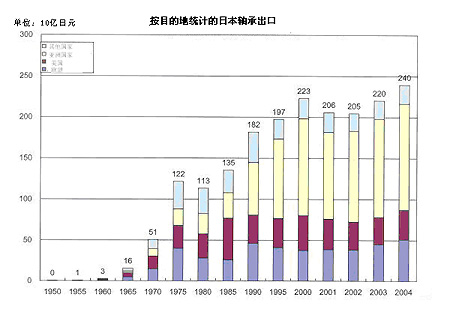 二戰(zhàn)后的一段時間里,日本對軸承業(yè)的生產(chǎn)和投資進行了限制,但它還是隨著汽車和家用電器等個人消費品工業(yè)的發(fā)展而發(fā)展起來。1952年,日本軸承工業(yè)開始應(yīng)用流水線生產(chǎn)。20世紀(jì)50年代后期,流水線已經(jīng)在軸承工業(yè)中得到大量應(yīng)用。同時,軸承工業(yè)獲得了日本政府的立法支持,這為軸承工業(yè)的強力增長奠定了基礎(chǔ)。1965年,與ISO相一致的新的日本國家標(biāo)準(zhǔn)出臺,日本的貿(mào)易開始擴大。20世紀(jì)70和80年代,日本與西方的貿(mào)易摩擦加劇,但日本的軸承工業(yè)得以幸免,原因在于:其一,日本的軸承工業(yè)建立了良好的出口秩序;其二,通過與西方國家同行業(yè)者的對話,彼此增進了理解;其三,日本軸承工業(yè)增加了海外建廠的數(shù)量。