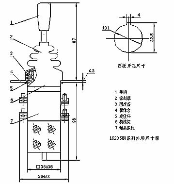 本產(chǎn)品具有體積小,操作靈活,維護簡單等。本控制開關(guān)的結(jié)構(gòu)為單方向及縱、橫十字方向操作,采用盤下安裝,盤上操作形式。